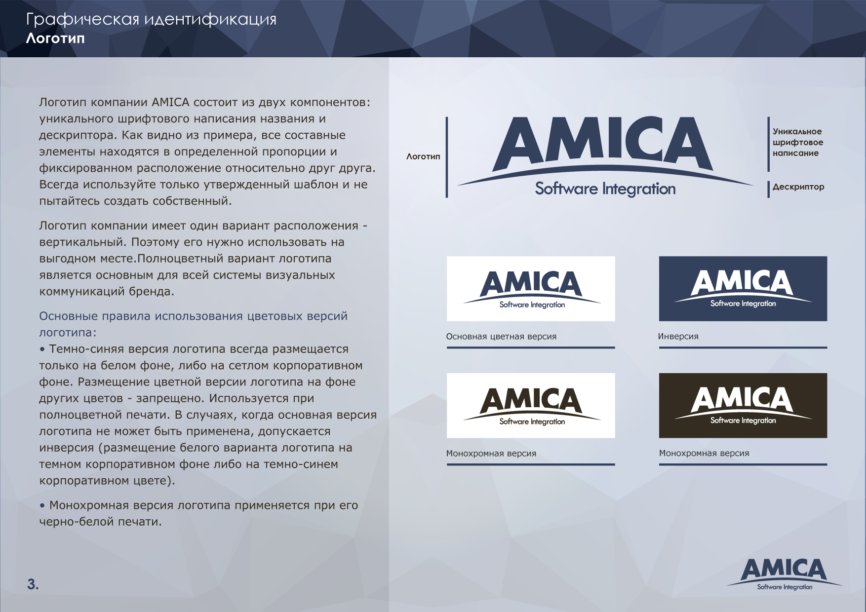 Фирменный стиль для компании AMICA — продажа и интеграция IT-решений
