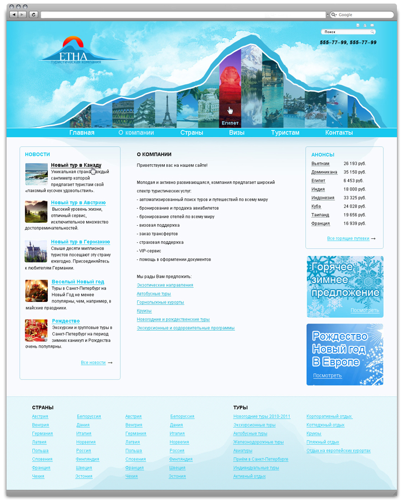 Сайт туристической компании «ЕТНА»